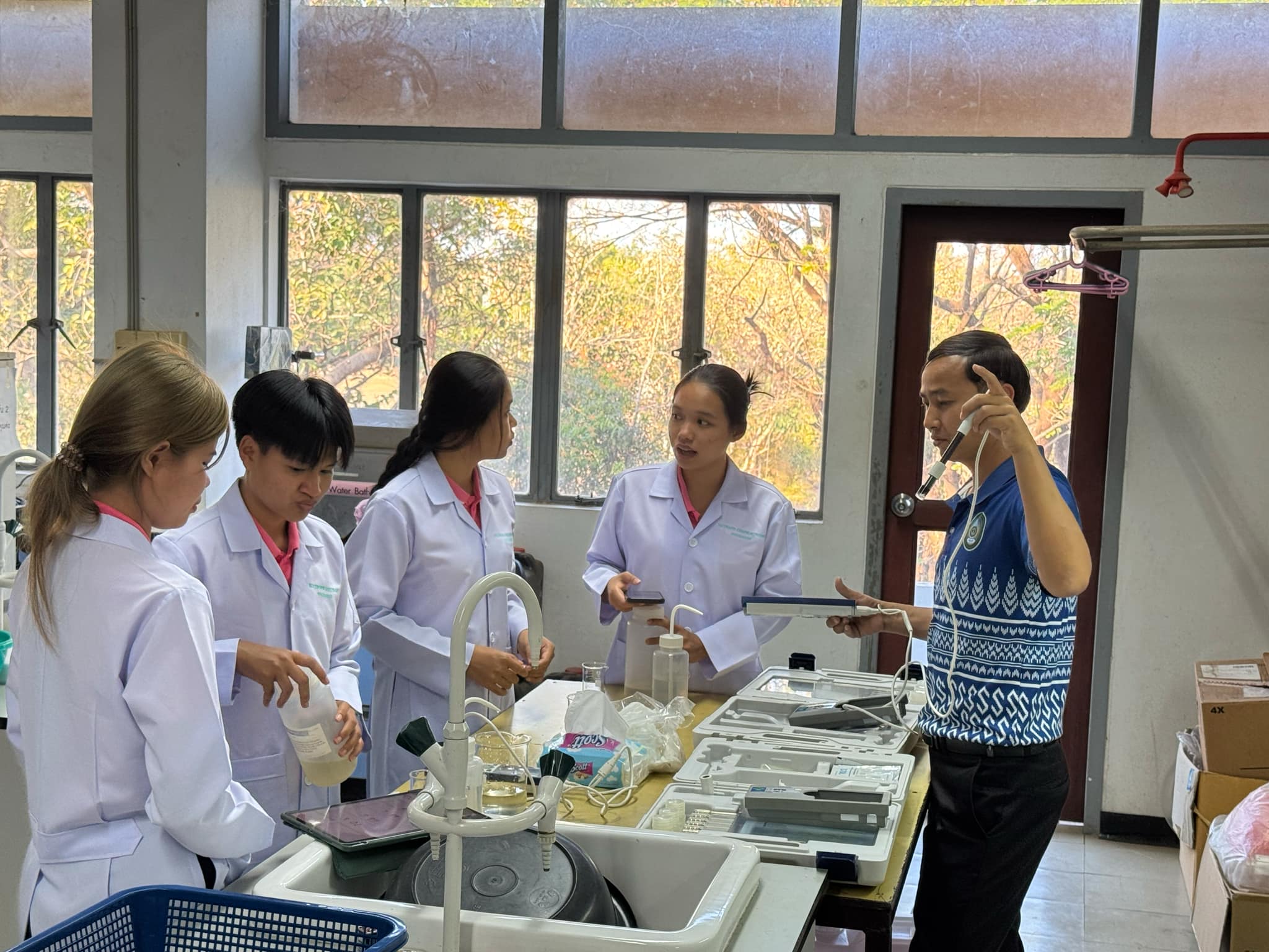Sakon Nakhon Rajabhat University (SNRU) offers comprehensive educational opportunities in water management to its public health science students, with a focus on developing practical, hands-on skills. The program, led by experienced faculty from the Faculty of Science and Technology, trains third-year public health science students in field and laboratory techniques essential for environmental health. This training includes practical exercises in collecting surface and groundwater samples from the surrounding areas of the campus. Students are taught to use scientific equipment for water quality analysis, both in the field (as shown during group training sessions) and within the university’s advanced laboratory facilities. By integrating fieldwork, scientific instrumentation training, and laboratory analysis, SNRU ensures that its students gain the professional competencies necessary for careers in environmental and public health monitoring.