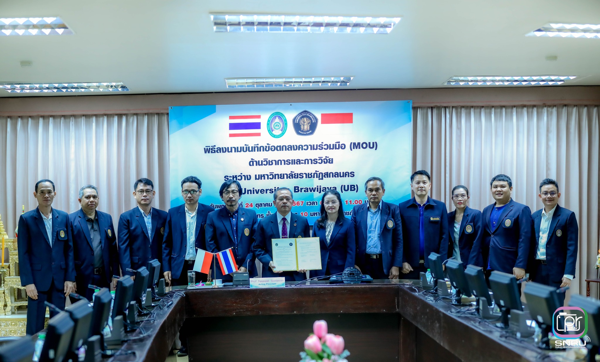 On October 24, 2024, Sakon Nakhon Rajabhat University and Universitas Brawijaya from Indonesia held an onlinesigning ceremony at Saraschan Meeting Room, 2nd Floor, Building 10, Sakon Nakhon Rajabhat University.