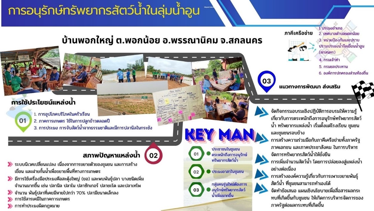 การศึกษานิเวศวิทยา และเศรษฐกิจที่เกี่ยวข้องทางด้านการเกษตร ความหลากหลายทางชีวภาพ เป็นแหล่งชุมชนที่เป็นวัฒนธรรม ของลำน้ำอูนพื้นที่บ้านพอกใหญ่ ตำบลพอกน้อย อำเภอพรรณานิคม จังหวัดสกลนคร