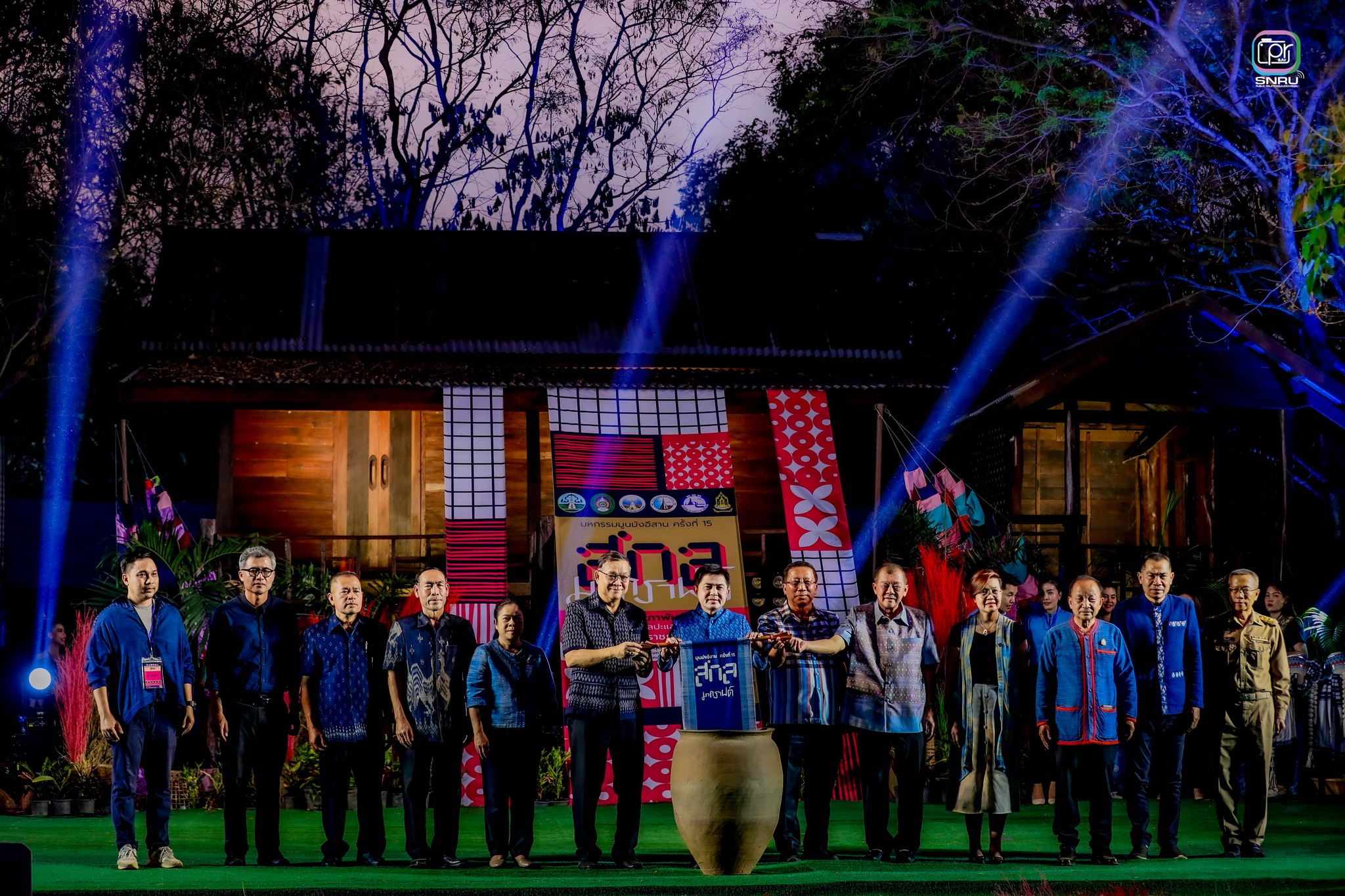 SNRU hosted a live exhibition titled “Sakon Craft Village” during the 15th Munmang Isan Festival, held under the theme “Sakon Ma Craft,” from 19–22 February 2024 at the central stage area along the Huai Sai stream. The exhibition showcased the local way of life, arts, crafts, and wisdom of communities in Sakon Nakhon Province. Demonstrations included fabric weaving, Isan-inspired textile design, basketry using local materials, pottery making, and cultural arts education.