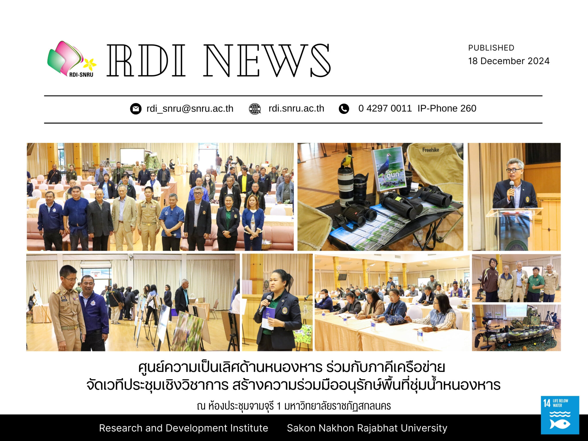 On December 18, 2024, the Nong Han Center of Excellence of Sakon Nakhon Rajabhat University, in collaboration with the World Wide Fund for Nature (WWF) Thailand Office, the Better Delta Sustainable Promotion Association, the Sakon Nakhon Bird and Nature Conservation Club, and the Nong Han Community Network, organized the Nong Han Wetland Academic Conference at Chamchuri 1 Conference Room, Sakon Nakhon Rajabhat University, Mueang District, Sakon Nakhon Province. The event was presided over by Mr. Weera Rerkwanitkul, Deputy Governor of Sakon Nakhon Province, and was attended by more than 100 participants, including representatives from government agencies, civil society organizations, and communities surrounding Nong Han. Key topics discussed at the conference included: ▪️ A report on the situation and progress of the project “Strengthening Community Capacity for Sustainable Management and Utilization of the Nong Han Wetland Area” (Leading the Change #1–2), presented by WWF and the Better Delta Sustainable Promotion Association ▪️ A summary of lessons learned from project implementation and recommendations from the Nong Han Community Network ▪️ Strengthening collaboration between agencies and local communities for natural resource management in the Nong Han area The conference was deemed a success in both disseminating key information to the public and establishing a strong collaborative network to support the sustainable development of the Nong Han wetland area.