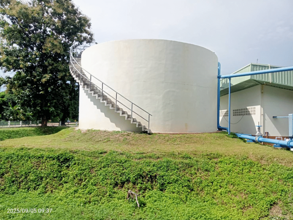This image provides an overview of the Water Recycling Program Implementation (WR.2) at Sakon Nakhon Rajabhat University in Thailand.