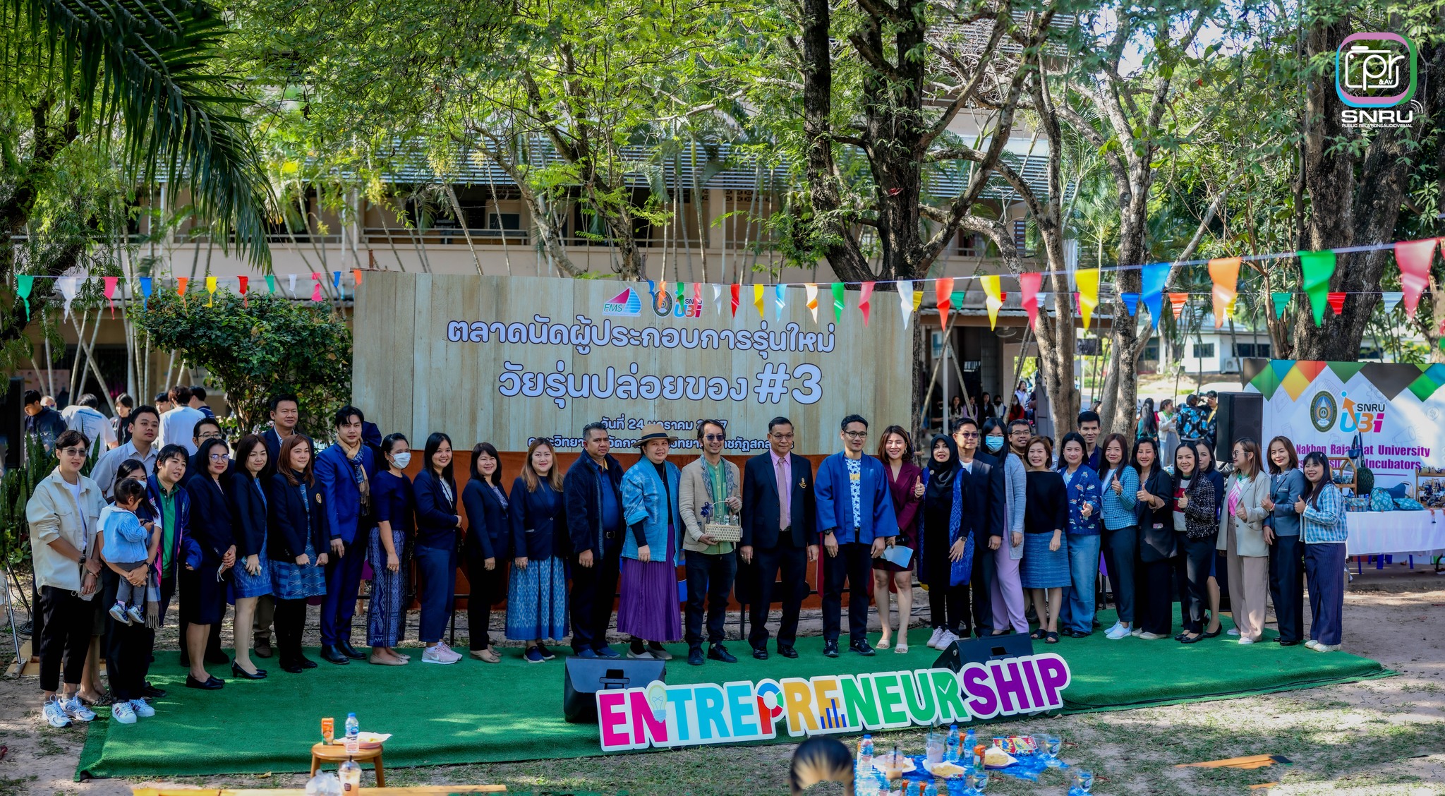 On January 24, 2024, the Faculty of Management Science, in collaboration with the SNRU University Business Incubator (UBI), organized the 3rd “Youth Market: Let the Young Shine” Entrepreneurial Fair at the activity court in front of Building 4, Sakon Nakhon Rajabhat University. The event was officially opened by Asst. Prof. Chakrit Chanchitprecha, Acting President of the University, with a welcoming address delivered by Asst. Prof. Dr. Samart Aiyakorn, Dean of the Faculty of Management Science. The primary objective of the event was to inspire and raise awareness among university students and staff about the value of becoming new-generation entrepreneurs. Key activities included a Business Talk session on youth entrepreneurship, featuring guest speaker Mr. Praphat Niyomkha, owner of Mann Craft. The event also featured a student-run marketplace, providing opportunities for students to engage in practical business experiences such as managing community enterprises, utilizing digital platforms and social media for business, and applying principles of product and price policy management. These hands-on activities aimed to develop entrepreneurial skills through real-world practice. Additionally, live musical performances by students from the Music Program contributed to the vibrant and engaging atmosphere of the event.